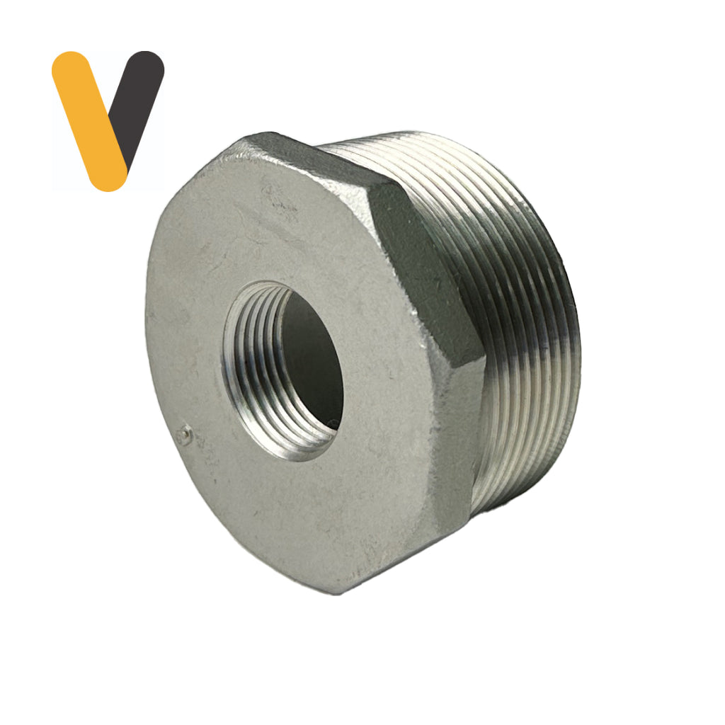 El Bushing Inoxidable para Conexiones Industriales cuenta con un diseño robusto que facilita la inserción en conexiones de diferentes medidas, garantizando una conexión estable y duradera.